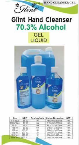 glint brand hand cleanser: 50 ml @ 20.00 inr + gst 18% mrp rs 25pp 100 ml @ 35.00 inr + gst 18% mrp rs 50.00 200 ml @ 65.00 inr + gst 18% mrp rs 100.00 500 ml @ 160.00 inr + gst 18% mrp rs 250.00 1 lt 240.00 inr mrp rs 500.00 5 lit 1650.00 inr +gst 18% mrp rs