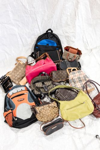 Our purse category includes purses, handbags, pocketbooks, backpacks and tote bags. Many famous brands are included such as Coach and Michael Kors and there are many current styles and nice colors. Our purses are sold in polypropylene bags, each filled bag weighs approximately 80 pounds.