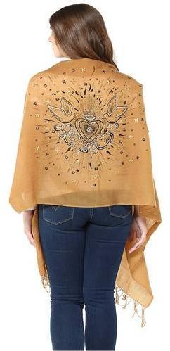 Embroidered Beige Woolen Stole, Technics : Handloom