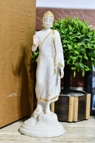 White Composite Marble Handmade Blessing Buddha Statue, For Interior Decor