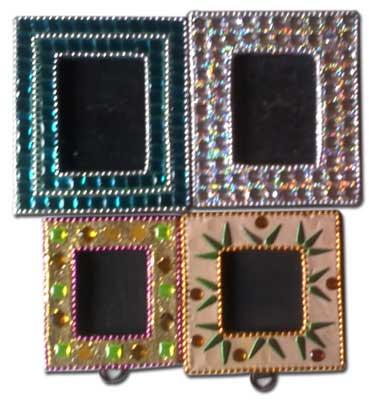 Material Used : Pine Wood, MDF BoardSize : 3.25" x 3.5" (Standard) or as per client requirements.Qty : 144 Pcs. Min.Specification : Made with Handmade Meena Paste on Pine Wood, MDF Board & decorated with Colored Moti, Kundan Stones, Flower Leafs, Mirror glasses, shells in different patterns & shapes with colorful graders & laquar polished.