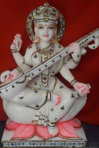Polished Printed Stone Saraswati Mata Statue, Technics : Handmade