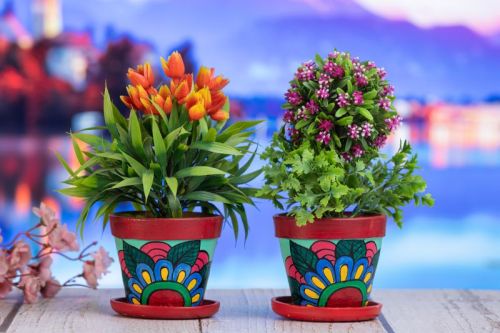 handpainted terracotta orchid planter, indoor clay planter manufacturer wholesaler exporter