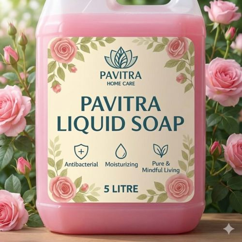 Keep your hands fresh and hygienic with Pavitra Liquid Soap, available in an economical 5-litre bulk jar perfect for refilling daily dispensers. This gentle pink formula offers dual action: it provides antibacterial protection to fight germs while using moisturizing ingredients to ensure your skin stays soft. Designed for "pure and mindful living," this high-quality wash is an ideal, cost-effective solution for homes, offices, or retail environments.