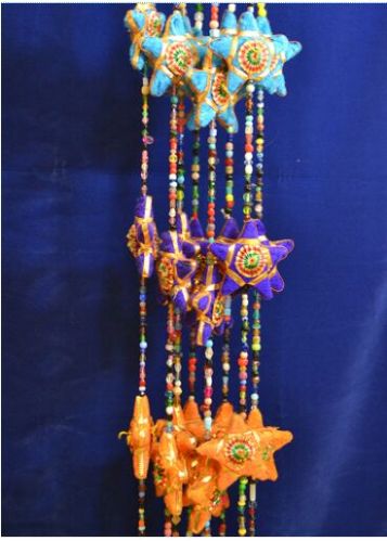 Beaded strings of five handmade stars, with a small bell on the end Pattern These items are not toys and not suitable for children due to small parts Colour Multi