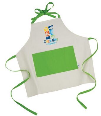 Adjustable apron is sized for men and women alike! Tie neck strap and tie back allow for the perfect fit. Large front pocket with stitched divider down the center for easy organization of contents. Perfect for baking, cooking or barbecuing. Happy Nest woven label on pocket. Material is a cotton and polyester blend. Exclusive Leed's design. Inventory expected 342015. 26.75" H x 27.5" L