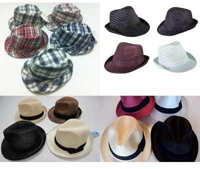 We offer Fedoras Hats Assorted 24pcs. [fedora] $192.00 assorted fedora hats. all first quality. mixed assortment: houndstooth, straw, fitted, pinstripe, plaid. 24pcs complete mix of styles. msrp: $20.00ea. your cost: $8.00each.
