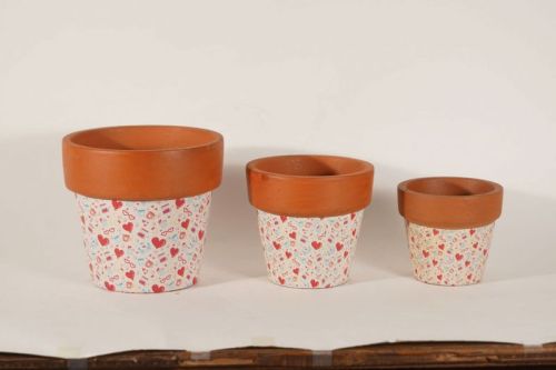 Multicolors Round Hearts Print Terracotta Clay Pot