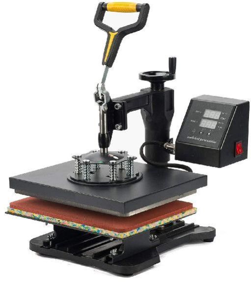 product description 100 brand new hihone 5 in 1 heat press machine, 12 x 10 inches digital sublimation 360 degree swivel professional heat transfer for t-shirt, hat, bag and mug adjustable height: 13 1/2″ to 17″arm handle: 2 4/5 inchpower input : 110vwattage : 900wtemperature range : 32 – 430 fahrenheit degree (0 – 250 centigrade)timer control : 0 – 999 secondscord length : 4.5″platen press (telfon-coated) : 12″ x