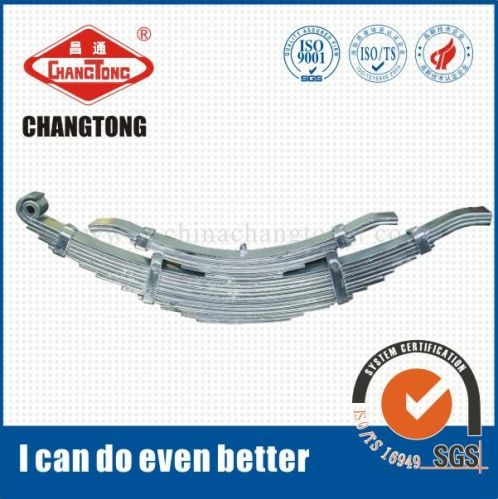 We are offering heavy duty leaf spring. Leaf spring manufacturing process: 1.cutting of flat bar 2.center hole punching drilling 3.end heating process forming (hot & cold process) 4.heat treatment (1).heating (2).camber forming (3).quenching (4).tempering 5.surface preparation (1).shot peening stress peening (2).painting 6.assemble (1).presetting & load testing (2).paint touch-up (3).marking & packing