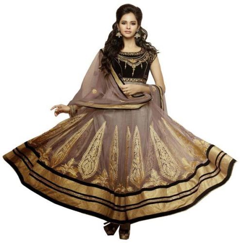 True Splendor Will Come Out From Your Dressing Design With This Light Brown NetVelvet Salwar Kameez. The Lace|Patch Work|Zardosi|Stones Work Appears Chic And Excellent For Any Event.