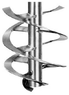 Helical impeller provides axial discharge of material by producing strong top to bottom motion Anchor blades may be used in combination with other types of impellers