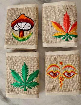 100% heavy cotton, multi color stripes with leather bordering all round and 100% Hemp fabric made. Multi pocket system inside, folding system, comfortable gent purses