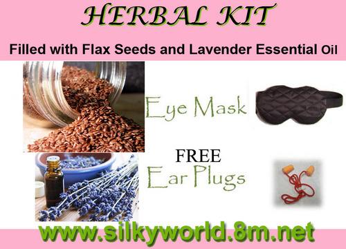 erbal Eye Mask was developed to bring you deep relaxation. The soft weight on your eyes calms your over-worked eyes while the soft lavender scent will ease tension. It's simply a sweet pleasure to the senses. Do you tend to suffer stress migraines headaches swelling sinitus or flu? The Herbal Eye Mask can alleviate all of these problems because it is made of flax seed and pure lavender essential oil.
