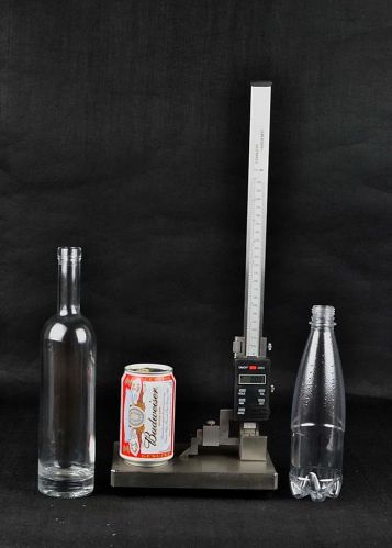 Hg-1 height gauge which is equipped with a measuring platform can be used to measure the height of bottle, can and other packaging. The gauge can be connected to at2e “seamcheck” software or spc system via the adapter and cable. Technical specifications: • measuring range: 0 - 300 mm • resolution: 0.01 mm • accuracy: + 0.02 mm • overall size: 200(l) x 150(w) x 495(h) mm • net weight: 5.4 kg optional parts: • measuring range: 0 - 600 mm • calibration block (length by order)
