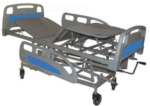 Frame Made up of Heavy M.S. Tubes.Collapsible Safety Side Rails.Head Foot ABS Panel.Urine Bag Holder.Bed mounted on 5 Castors 2 with brakes .4 Section uniformly perforated top Made up of CR.Pre Treated with 7 tank chemical treatment.Epoxy Powder Coated.Detachable Lever Handle on foot – end to obtain various position.Optional: 4 section MattressChoice of Head foot ABSChoice of Castor Wheels