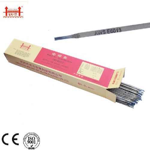 Contact SupplierHigh Quality Copper bridge Brand Welding Electrode E6010 Business Type: Manufacturer, Trading company Certificate: ISO, BV, CE, SONCAP, CCS, ICQ Brand Name: Copper Bridge Main Market: South Africa, Southeast Asia, England, Korea, America, Africa OEM: accept Sample: free supply HS code: 83111000 We can sure you can find the best price from here because we are the factory, we are factory directly sales. WELDING ELECTRODE AWS E6013 is electrode can be used with AC and DC currents. It produces a medium penetrating weld with a superior weld bead appearance.Aws e6013 is an all-position, rutile electrode formild steel.  1.Brand:COPPER BRIDGE 2.Size : 2.0mm,2.5mm,3.2mm,4.0mm,5.0mm 3. model: E 6013 E 6011 E 7018 and so on4.Electrode/rod used for welding in all positions5.Stable quality and sweet aftersale service guarantee. Chemical Compossition of Deposited Metal (%)      C       Mn        Si        S       P Guaranteed value 0.12 0.3~0.6 0.35 0.035 0.040 Typical value 0.07 0.4 0.25 0.019 0.025 Sizes, Length & Recommended Current (AC/DC) Diameter (mm) 2.0 2.5 3.2 4.0 5.0 Length (mm) 300 300 350 400 400 Current (A) 40~70 50~90 90~130 130~210 170~230 Mechanical Properties of Deposited Metal (%) Test Item Rm(MPa) ReL(Mpa) A(%) KV2(J) KV2(J) Guarantee Value ≥420