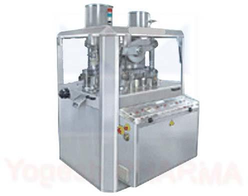 Y-Mek High Speed Double Side Rotary Tableting MachineSimple and convenient operation, changeover, cleanliness and easy to maintainAvailable in different Models 37 Stn. – D, 45 Stn. – B, 55 Stn. & 61 Stn. – BB Tablet compression machine with max. output of 4,38,000 Tablets/hr.AC Frequency Drive.Turret Drive from closed gear box through internal teeth gearing & Electro Magnetic Clutch.S. S. Die pot, 3 pc. Turret with lower punch seal