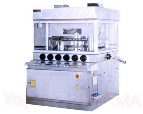 Contact SupplierHigh Speed Double Side Rotary Tableting Press with Pre-Compression for large production with Design Conforming to GMP normsSimple and convenient operation, changeover, cleanliness and easy to maintainAvailable in different Models 45 Stn. – D, 55 Stn. – B, 69 Stn. & 75 Stn. – BB Tablet compression machine with max. output of 5,40,000 Tablets/hr.Pre-Compression system to improve compressibility and tablet quality.Turret Drive from closed gear box through internal teeth gearing & Electro Magnetic Clutch.S. S. Die pot, 3 pc. Turret with lower punch sealAC Frequency Drive.All controls like tablet thickness, hardness and weight adjustment are outside and front of the machine.Hydraulic Power Pack for pressure loading and releasingFast and quick changeover and easy cleaning designClosed Front Electric Control Panel with safety guideAuto Lubrication systemOptional PLC Control Available