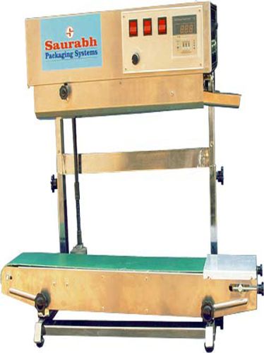 Output : 4.5 mtrmin to 20 mtrmin. Power Requirement : 220 V AC 1 Ph or 420 V AC 3 ph. Logo Engraving Attachment : To engrave your logo, Company Name, Packing date, etc. in sealing area.