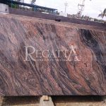 It is a beautiful granite quarried in South India. Without much variation in pattern, this natural stone has orange swirls and streaks over a light blue background.