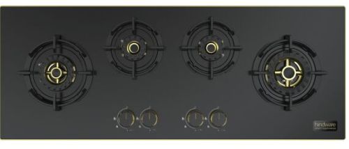 Flame Failure device Flame guard Pan Support 8 mm toughened glass with Matt Finish in Black color Elegant Golden Metallic Knob Golden bidding on glass for premium look Designer Fully Brass Burner Auto Ignition