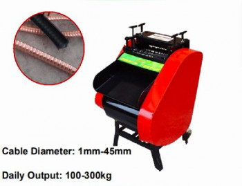 This scrap cable stripper machine has multiple stripping channels for different wire sizes, you only need to put the wires into a suitable channel, the upper blade and bottom blade will slash open the outside insulation respectively, then the inner copper can be taken out easily. Specifications: Available Cable Size: Dia 1mm-45mm Power Rating: 3000/4000W Power Supply: 110V 220V 380V Daily Output: 100-300kg Measurement: 550x530x830mm Net Weight: 98kg Remark: We also have a customized model for slight gauge cable diameter 0.6MM to 12MM. this model no. is