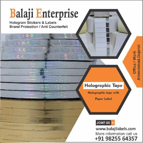 Contact SupplierWe provide our customers an assortment of advanced Holographic Tapes, which are provided in a number of designs, colors and shapes. High level of security and leaves induction sealing to envelops, cartoon, bag, box etc.. When the patter realised is open it leaves the word 'VOID' 'Opened' ' Cancel' and 'Opened' tapes can be customised for any use of security purpose. We use supreme quality raw materials to fabricate these Hologram Tapes in accordance with the industry set standards. These are available in the specifications of Length : 50 mtrs to 2000 mtrs and Width : 6 inches. They are available in Bright colors, highly durable and easily sicks, these are some attributes of our Holographic Tape.