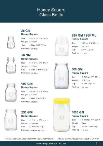 Honey Square Glass Bottle, Feature : Eco Friendly