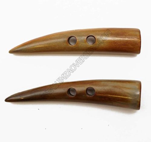 The toggle design of these buttons adds a distinctive and functional element to your clothing or accessories, allowing for easy fastening and a secure closure. The smooth and polished surface of the buffalo horn buttons not only enhances their aesthetic appeal but also provides a comfortable feel when handling.