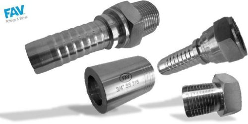 We have Stainless Steel Hose Fittings for 1 Wire Hose( R1, 1SN) ,2 Wire Hose ( R2, 2SN) ,4 Wire Hose (4SP and 4SH) and 6 Wire Hose .We keep quite a few of these fittings in stock .To know the stock status email us on sales@fav.net.in.