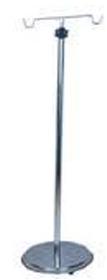 M.S. tubular pipe. Five legged heavy polypropylene base mounted on 5 cms castors. Double hook S.S. adjustable IV rod with a bakelite knob. Pre-treated and epoxy powder coated. Knockdown construction.