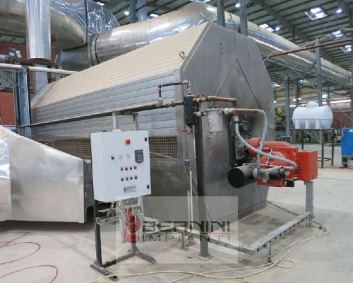 This hot air generator which uses heavy oil burners is particularly suitable for every kind of use where the heating fluid has to be exclusively clean air, without any kind of combustion product.  Mod. GB-1000: 1.000.000 kcal/h Outflow air temperature 150°C maximum capacity. h 33.000 Mod. GB-1500: 1.500.000 kcal/h Outflow air temperature 150°C maximum capacity. h 50.000 Mod. GB-2000: 2.000.000 kcal/h Outflow air temperature 150°C maximum capacity. h 66.000 Mod. GB-2500: 2.500.000 kcal/h Outflow air temperature 150°C maximum capacity. h