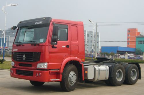 cabin: hw76 with one bed, without ac, rhd overall dimensions (l x w x h):6800×2496×2958 (mm) wheel base: 3225+1350 (mm) wheel track (frontrear): 20221830 (mm) curb weight: 9230kg hauling capacity: 40000kg max. driving speed: 90(kmh) engine horse power: 273kw(371hp) euro ii type: wd615.47, four stroke, direct injection, water cooled, turbocharged, 6 cylinders. displacement (9726lit) gearbox :hw19710, 10 forward gears & 2 reverse ,synchronized. clutch: hydraulic control with air booster, pushing, diameter; ф430mm steering gear: zf8098 fifth wheel: #50(2”) axles front axles : 7 tons, rear axles: 16 tons suspension front: 9 rear:12 battery: 24v, battery capacity (a.h): 180; starter motor power (kw): 7.8; alternator capacity (a): 70 fuel tank (l) :steel fuel tank , 400lit tire : 12r22.5 brakes: air brake system, split pneumatic circuit , parking spring brake acting on rear axles , exhaust brake, without abs