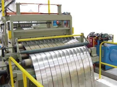 HR slitting line its drive is disconnected. Slitter moves the slitted strips further. Slitted strips are threaded through loop table and drag tensioner into the recoiler drum. Recoiler winds one turn on loose coil.