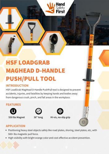 Introducing the HSF LoadGrab MagHead D-Handle Push/Pull Tool, a revolutionary safety solution designed to enhance workplace safety by minimizing the risk of accidents, injuries, and fatalities. This innovative tool keeps hands and bodies away from hazardous crush, pinch, and fall areas, making it an essential asset in industrial settings.
