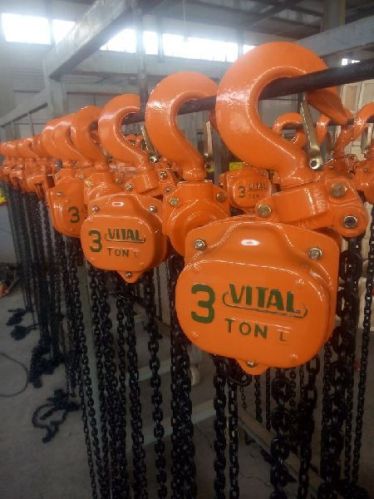 Contact SupplierThis Chain Hoist is a portable lifting device operated by hand chain. It is suitable for use in factories, mines, farms, construction sites, wharves, docks and warehouse for installation of equipment, as well as for loading and unloading goods. It is specially advantageous for lifting work in the open air and places where no power supply is available.  The chain hoist can be attached to a trolley of any type as a traveling chain house. It is suitable to monorail overhead conveying system, hand travelling crane and jib crane.  Features  >Safe, reliable in operation with minimum maintenance.  >High efficiency and small hand pull.  >Light weight and easy handling.  >Fine appearance with small size.  >Durability in service. Model HSZ-VT 1/2 HSZ-VT1 HSZ-VT1 1/2 HSZ-VT2 HSZ-VT3 HSZ-VT5 HSZ-VT10 Capacity(t) 0.5 1 1.5 2 3 5 10 Standard Lift(m) 2.5 2.5 2.5 3 3 3 3.5 Running Test Load (t) 0.75 1.5 2.25 3 4.5 7.5 15 Minimum Distance Between Hooks (mm) 285 315 340 380 475 600 700 Chain Pull Force In full Loading (kg) 25 33 34 34 35 39 41  Load Chain No. 1 1 1 1 2 2 4 Load Chain Diametter(mm) 6.3 6.3 7.1 8 7.1 9 9 Net Weight (kg) 8.4 11 13.5 21 22 40 77 Gross Weight(kg) 9.4 12 14.5 22 23 41.5 85 Packing Measurements(L*W*H) cm 30*17*32 30*17*32 30*17*32 28*19*23 30*17*32 40*20*34 62*50*26.