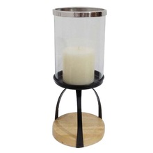 OM INTERNATIONAL Wood/ Iron Hurricane Candle Holder, Size : 20X17X17 CM