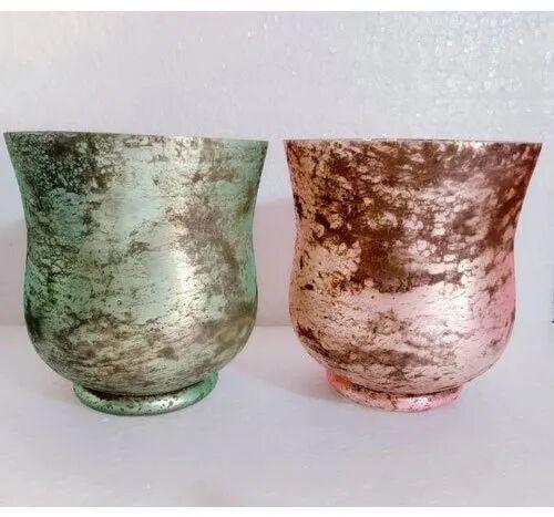 Green Pink Glass Hurricane Vase, Shape : Round