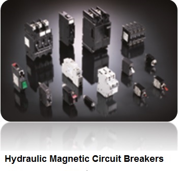 A hydraulic magnetic circuit breaker, is a mechanical circuit protection device. The main components are a coil, an iron core sealed in a tube filled with hydraulic fluid, a spring loaded actuator, and two electrical contacts,. When excessive current from a current overload, runs through the device, the electromagnetic field in the coil is increased which moves the iron core through the tube and causes the spring loaded actuator to trip, separating the contacts and opening the circuit. Opening speed is determined by the viscosity or thickness of the hydraulic fluid.