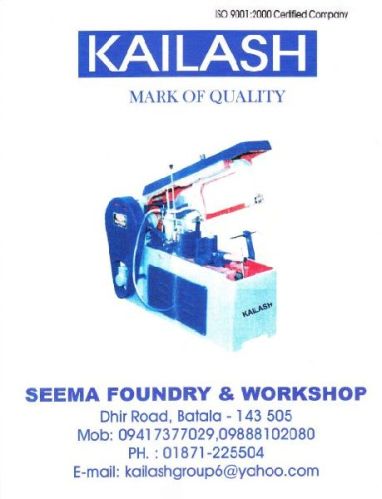 Contact Supplier“Kailash" Brand Hydraulic Control Hacksaw Machine has been designed to cut quickly & accurately all material from nickel chrome steel to plastic, controls are simple & easy, An automatic cut out operates at the completion of the operation Er the bow slide retums to the top position, The machines has attractive appearance.