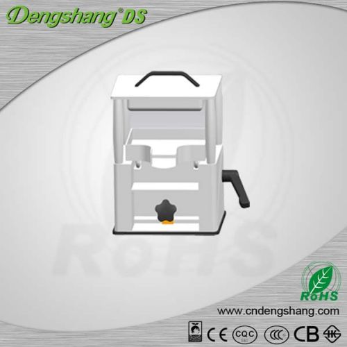 3.using the press is easy and fast. Tighten the screw at the bottom, then pump the jack handle a few times to raise the drip tray to the press plate.once the press plate touch the bag, juice begins to flow and drip into the collecting bowl (not provided) without any effort at all.