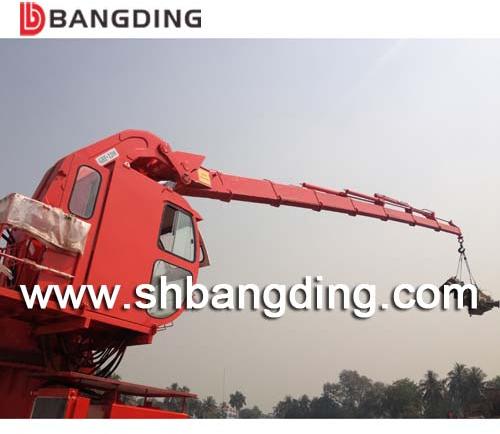 straight boom crane is designed for loading and unloading ship-borne containers at a port. It is capable of lifting and loading dangerous cargoes. It can be used as hose crane when working on oil products in chemical docks and also be used as hydraulic straight boom marine crane when installed on ships. Straight boom crane is often applied to where there are no many loading and unloading operations. This crane owns a hoist fixed on a trolley that runs horizontally along tracks and usually fitted on a single beam or two beams. The crane frame is supported by a gantry system with equalized beams and wheels. The hydraulic straight boom marine crane come in various sizes and some can move very heavy loads used in shipyards or industrial installations. We can supply lifting hook and grab bucket as customers' requirement. Straight boom crane is available for port, wharf, freight yard, explosion proof, suitable for ships