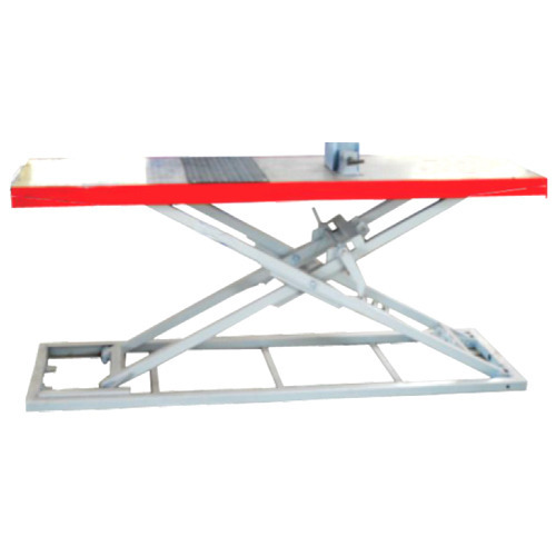 Contact SupplierThe most economical yet sturdy Hydraulic Ramp for Two Wheelers. Made of mild steel powder coated tubular sections, scissors lifting arrangement with locking system ensures smooth and safe operation. The foot operated Hydraulic system meets the highest quality standards with hard chrome plated piston and burnished cylinder. The ramp can be operated with little effort, does not require electrical power and can be easily shifted any where within the shop floor. Easy loading platform, aluminium checkered plate for stand portion and adjustable front wheel locking system meets the entire requirement of the customer. The Hydraulic system requires very minimum maintenance.