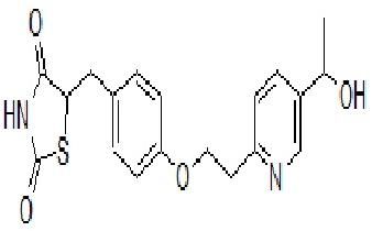 We are offering hydroxy pioglitazone. Cas no. 146062-44-4 molecular weight 372.44 molecular formula c19h20n2o4s chemical name hydroxy pioglitazone (m-iv) synonyms -[[4-[2-[5-(1-hydroxyethyl)-2-pyridinyl]ethoxy]phenyl]methyl]-2,4-thiazolidinedione appearance white to off-white solid
