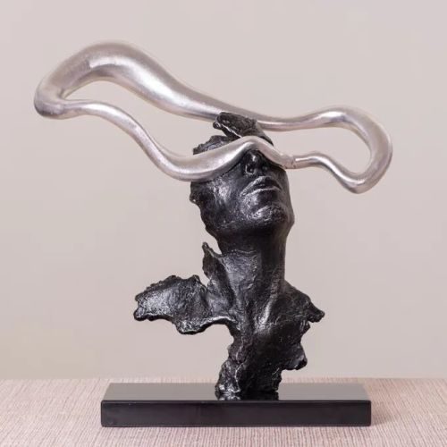 Contact SupplierOur Hypnotic draws you in with its exquisite detailing, modern colour palette and sparkling finish. Grounded on a black marble base, this artistic sculpture is enriching in its colours and elegant in its choice of materials. The human figurine is crafted in the rugged appeal of metal and painted in a shiny black finish, while the ring of thoughts flaunts a soothing silver finish, complementing the colour palette. The black marble base completes this black and silver home decor. Style this metallic home decor on your mantelpiece and pair it with rustic designs in a similar colour palette for a curated look.