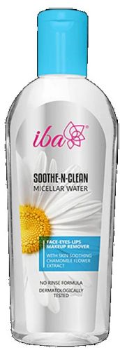 Contact SupplierSuitable for all skin types as well as sensitive skin. Iba Soothe-n-Clean Micellar Water is a non-sticky, oil-free formula that pulls sebum and all other daily impurities and makeup off your skin. The breakthrough micelle particles gently yet effectively help to remove all makeup without drying out the skin thus making it suitable for all skin types including sensitive skin. It is infused with skin soothing and healing Chamomile Flower Extract which leaves the skin perfectly refreshed and clean (it smells refreshing too!). It is hydrating and doesn’t use harsh chemicals plus it works wonders for acne-prone skin as it removes debris without making it oily. Dermatologically Tested Paraben Free Alcohol Free No Mineral Oil