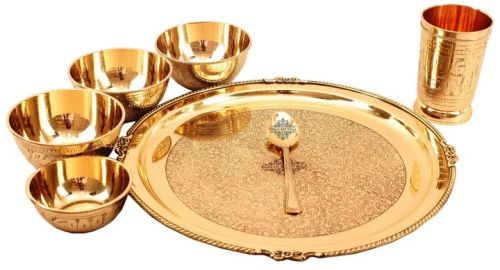 Contact SupplierMaterial: Crafted from high-quality brass, ensuring durability and longevity. Brass material adds a touch of luxury to the dinner set. Embossed Design:Each piece in the set showcases an embossed design, adding a tactile and visual dimension to the dinnerware. The embossing enhances the overall aesthetics, creating a sense of regality. Complete Set: Consists of seven pieces, typically including a Thali (large plate) and Katoris (bowls) for serving various dishes. The set is designed to provide a complete and cohesive dining experience. Maintenance: Requires proper care to preserve its shine and prevent tarnishing. Regular cleaning with a brass cleaner or a mixture of lemon and baking soda may be recommended. This beautiful and useful Product has been handcrafted and Artisan Crafted by skilled craftsmen of Indian Art Villa with care & love and is of exceptional quality which makes it a perfect Gift for all occasions. Order this Brass Lota from IndianArtVilla at Great deals & offers and get a contactless delivery at your doorstep.