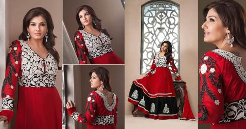 We are offering red salwar kameez, its a master piece in its class glorifying your timeless beauty. Look ethnic in this affluent black & red faux georgette salwar kameez. It has been beautifully designed with floral patch, patch work, resham & stones work.