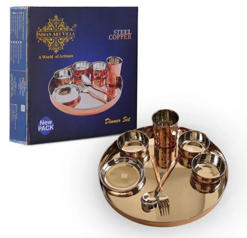 Contact SupplierIndian Art Villa Pure Copper Hammered Design Dinner Set, it was almost impossible to find one that came in a design other than the plain one. Indian Art Villa Provide You with different designs to choose from, allowing you to pick your favorite design or collect them all for those who want a variety of options. These Pure Copper Hammered Design Dinner Set also have Trendy looks for better ergonomics. You can add Royal Vintage Look to your Kitchen & Dining by using these Set as your Dinnerware/Serveware Purpose. This beautiful and useful Product has been handcrafted and Artisan Crafted by skilled craftsmen of Indian Art Villa with care & love and is of exceptional quality which makes it a perfect gift for all occasions. Order this Pure Copper Hammered Design Dinner Set from Indian Art Villa at Great deals & offers and get a Contactless delivery at your doorstep. Our Products come with INDIAN ART VILLA Care instruction Booklet & Sample Cleaning Powder, so our customer cum family faces no problem while using the product.
